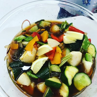 chiaki 夏野菜の南蛮漬け 材料2人分 きゅうり 1本 ズッキーニ 1本 かぶ 1個 かぼちゃ 100g 赤パプリカ 1/2こ 赤たまねぎ 1/4こ 揚げ油 適宜 (野菜はこれ以外、冷蔵庫にある食材でOKです!なすや…