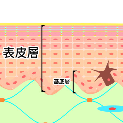 jobikai お悩み解決辞典 基底層とは? 基底層とは、肌の表皮層の中でも一番下にある部分。真皮層との境目にある層の事です。 表皮層の細胞は全てこの基底層で作られ、基底層で新しい細胞が作られる毎に古い細胞が肌表面へと押…