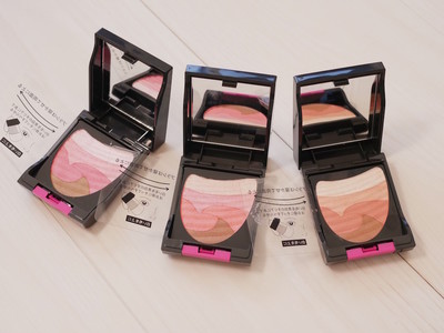 船山葵 01 ローズピンク 肌の透明感を引き立て、色っぽい顔立ちに仕上げてくれるローズピンク。入れ方で色っぽく見せるのなら、ほお全体をうす〜く染めるように入れて、顔が上気したように見せるのがおすすめ! 02 ピーチ 内側…