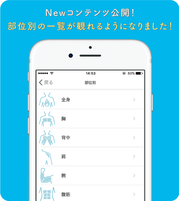 Fystaが、Ver1.2.2にアップデートされました! アップデートの内容をご紹介いたします。 ▼アップデート時期 2017年8月15日(火) ■Newコンテンツ公開 部位別コンテンツが新しくなりました! 鍛えたい部位…