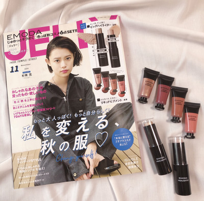 佐久間愛素佳 EMODAのハイライター&リキッドピグメントセット どんな肌色も綺麗に艶めかせることが出来る2種類のハイライターと、デイリーに使えるけど今っぽいニュアンスを付けてくれるリキッドピグメントが、今回のJELLY…