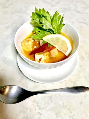 chiaki 大根のトムヤムクン風スープ 材料(4人分) ☆大根 1/4本 ☆厚揚げ 200g ☆トマト 1こ ☆しょうが 1かけ ☆にんにく1かけ ☆鷹の爪 ☆ガラスープの素 小さじ2 ☆ナンプラー 小さじ2 ☆レモン…