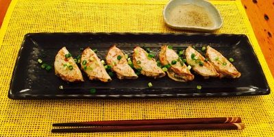 しっかりと味をつけているので、そのまま食べれますが、私のオススメは、酢とコショウの酢コショウだれ。