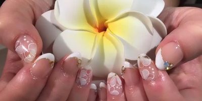 1カラーだけで簡単にできる、レース風お花ネイルを紹介します。