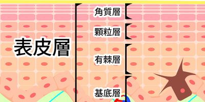 基底層ではどんどん新しい細胞が作られるため、新しい細胞に押し上げられるようにして肌の細胞は有棘層~顆粒層へとのぼっていきます。