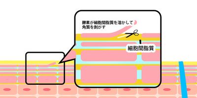 そうならないために、ある程度の厚さになったところで一番表面の角質を剥がす機能を、肌にある酵素(トリプシンやリパーゼなど)が担っています。