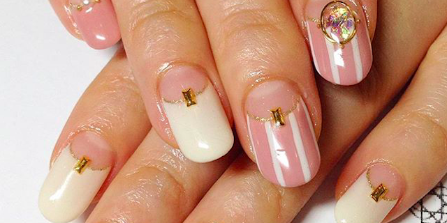 パールを乗せることにより華やかさに上品さも加わり王道の大人可愛いストライプネイルへと仕上がっています♪