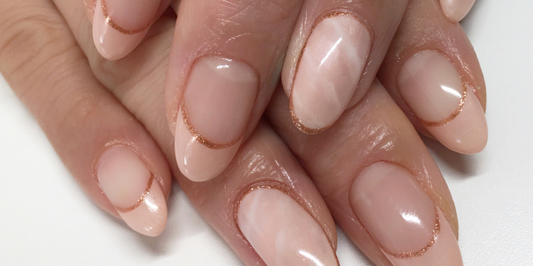 こちらはベージュカラーとラメラインの斜めフレンチです。