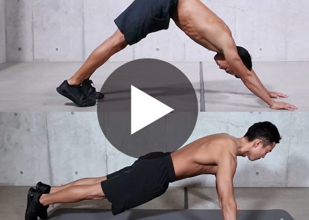 〈動作名〉 ナロープッシュアップ・パイク ショルダープッシュアップ 〈ポイント〉 ■ナロープッシュアップ・パイク 1、パイクポジションから戻った際に体が床に付かないように気をつける ■ショルダー・プッシュアップ 1、手は…