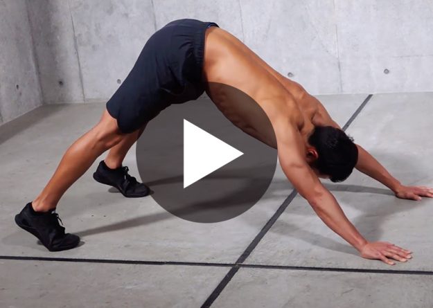〈動作名〉 プッシュアップパイク 〈ポイント〉 1、手を肩幅より少し広く置く 2、身体が床に付かないように気をつける 〈部位〉 肩 胸