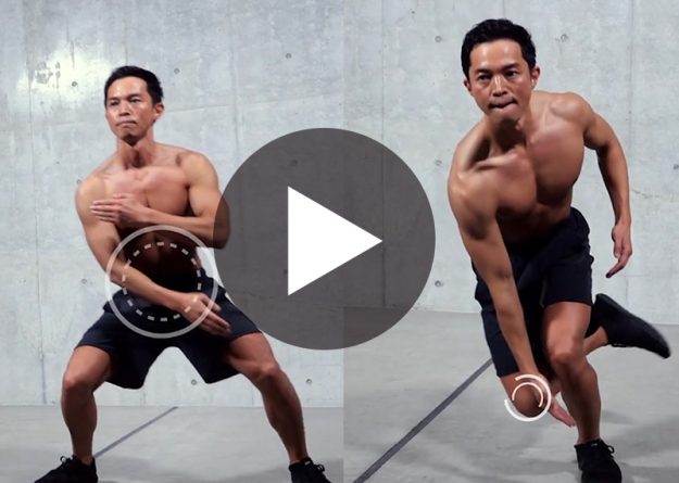 〈動作名〉 ラテラルシャッフル ラテラル・ホップ 〈ポイント〉 ■ラテラルシャッフル 1、シセを崩さないように気をつける 2、切り返しの際に腰を落として反動をつける ■ラテラル・ホップ 1、着地のときに膝を使って衝撃を吸…