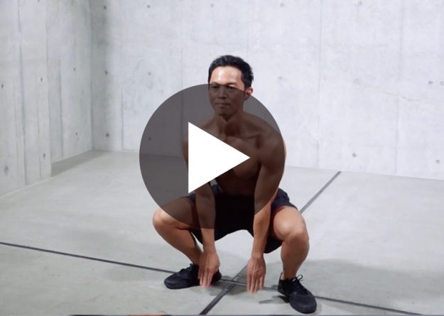 〈動作名〉 ジャンプスクワット 〈ポイント〉 1、ジャンプは軽く、膝に負担がかからないよう程度にする 2、指先が床に軽く付くまで腰を下ろす 〈部位〉 脚