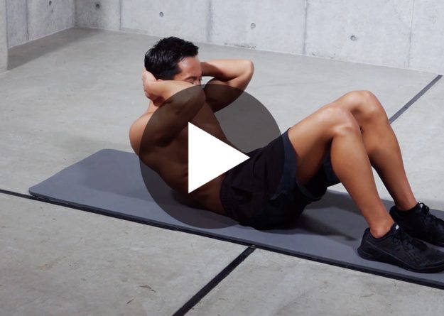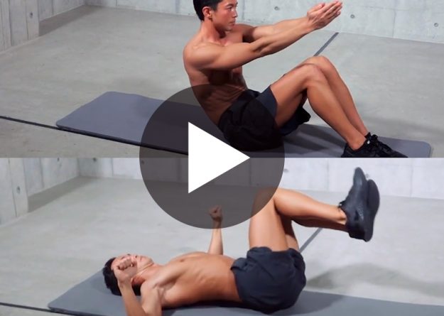 〈動作名〉 クランチ 〈ポイント〉 1、肩甲骨が床から離れる程度体を起こす 2、お腹を中心に体を丸め、おへそを見るようにする 〈部位〉 腹