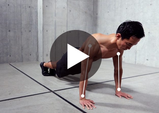 〈動作名〉 プッシュアップ ラットプル クランチ ワイドスクワット 〈ポイント〉 ■プッシュアップ 1、手は、すくし広めにあけ、まっすぐ前方を向ける 2、胸、腰、膝、足が一直線になるように肘を曲げる 3、腰がそらないよう…
